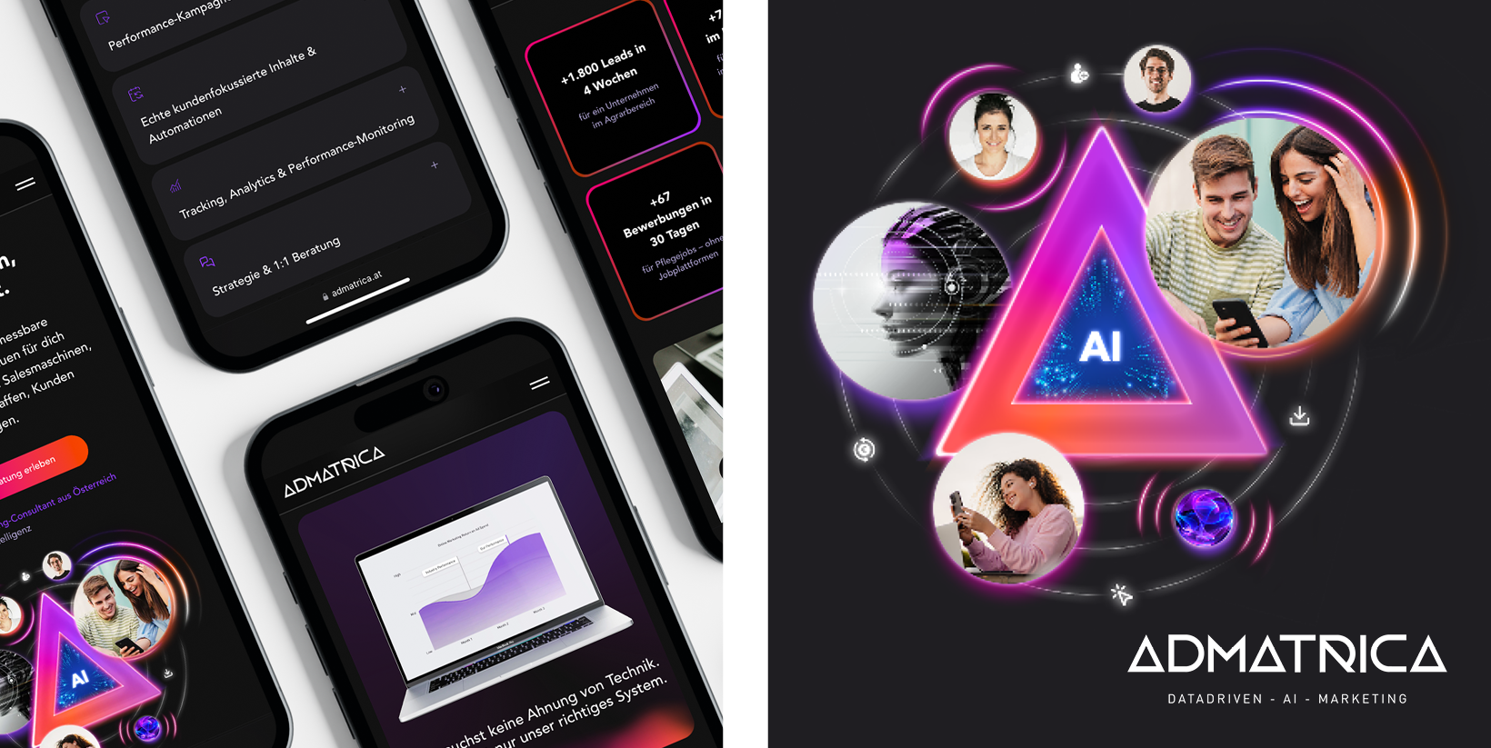 Wir haben ADMATRICA von Grund auf mit einer starken Markenidentität ausgestattet – von der Brand Naming bis zum Corporate Design. Unser Team hat ein unverwechselbares Logo mit einzigartiger Typografie entwickelt, das die Werte und das Leistungsversprechen der Marke perfekt einfängt: datengetriebenes Marketing und künstliche Intelligenz. Das Design unterstreicht die Innovationskraft und Zukunftsorientierung von ADMATRICA, so dass Kunden und Partner sofort erkennen, dass sie auf einen Vorreiter im digitalen Marketing und Sales setzen.
